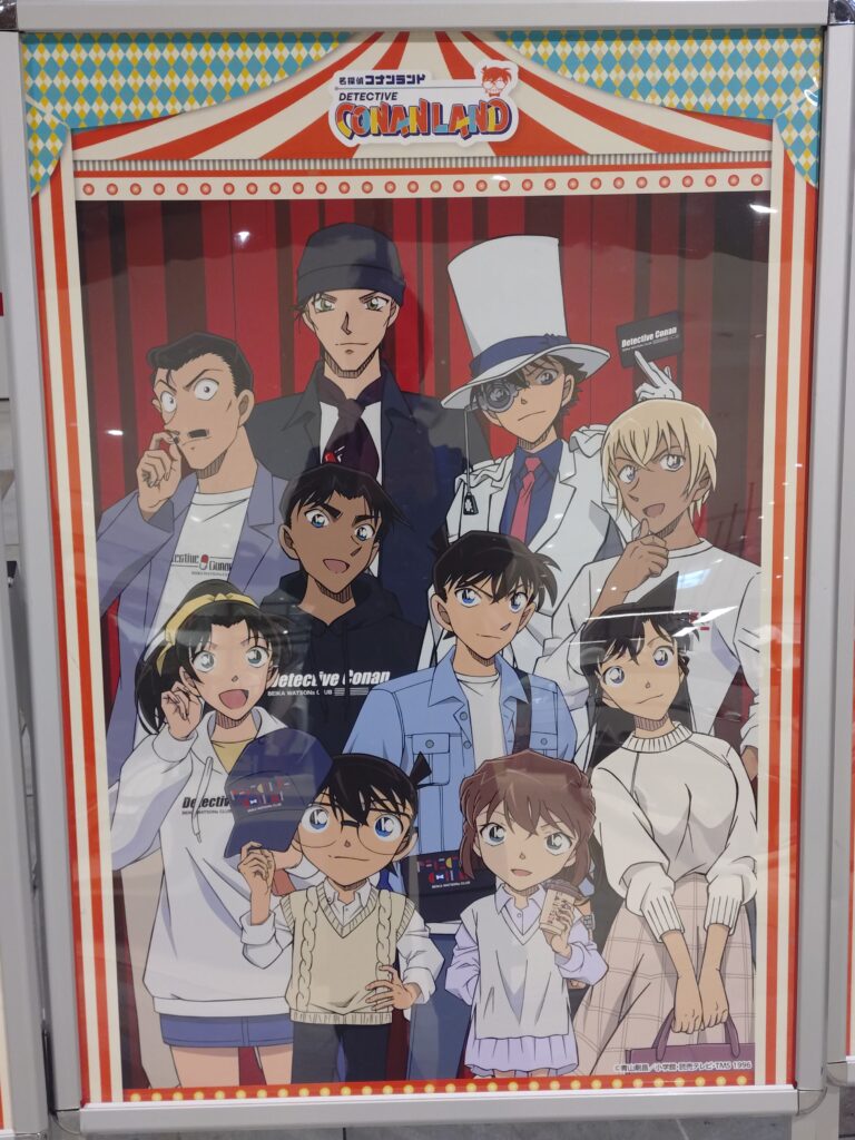 2025年ららぽーと東郷で開催されたコナンランドのキャラクターのぼり。江戸川コナンが描かれている。 オタ活レポ