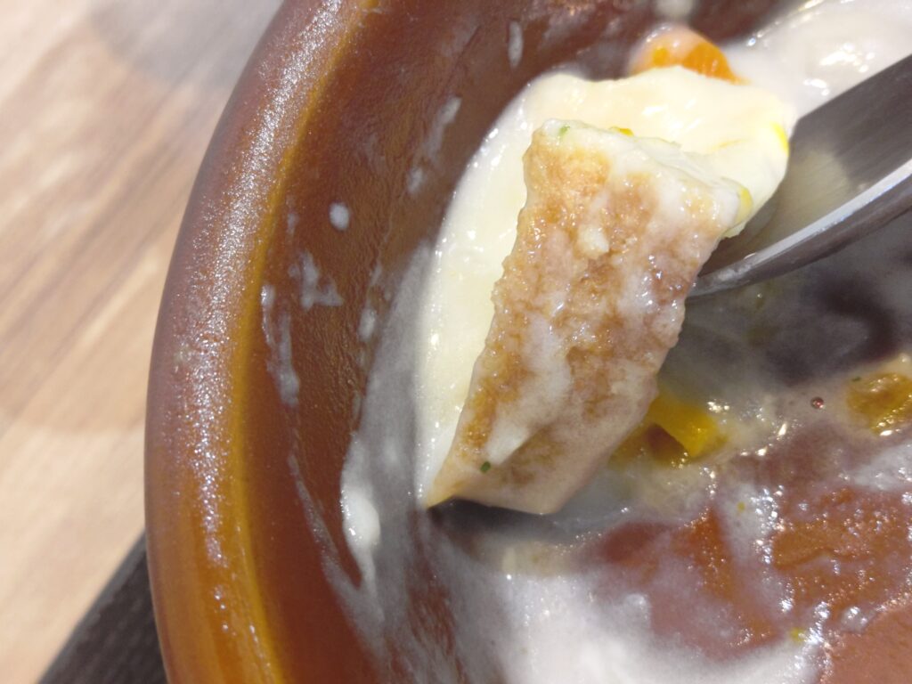 やや小ぶりの量なのですが、クリームシチューのパングラタンなので見た目の量は少なく感じるけど満足感はあります。