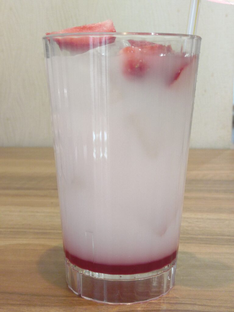 いちごチョコとメニュー名にありましたがホワイトウォーターとのことなので、見た目は白と赤。