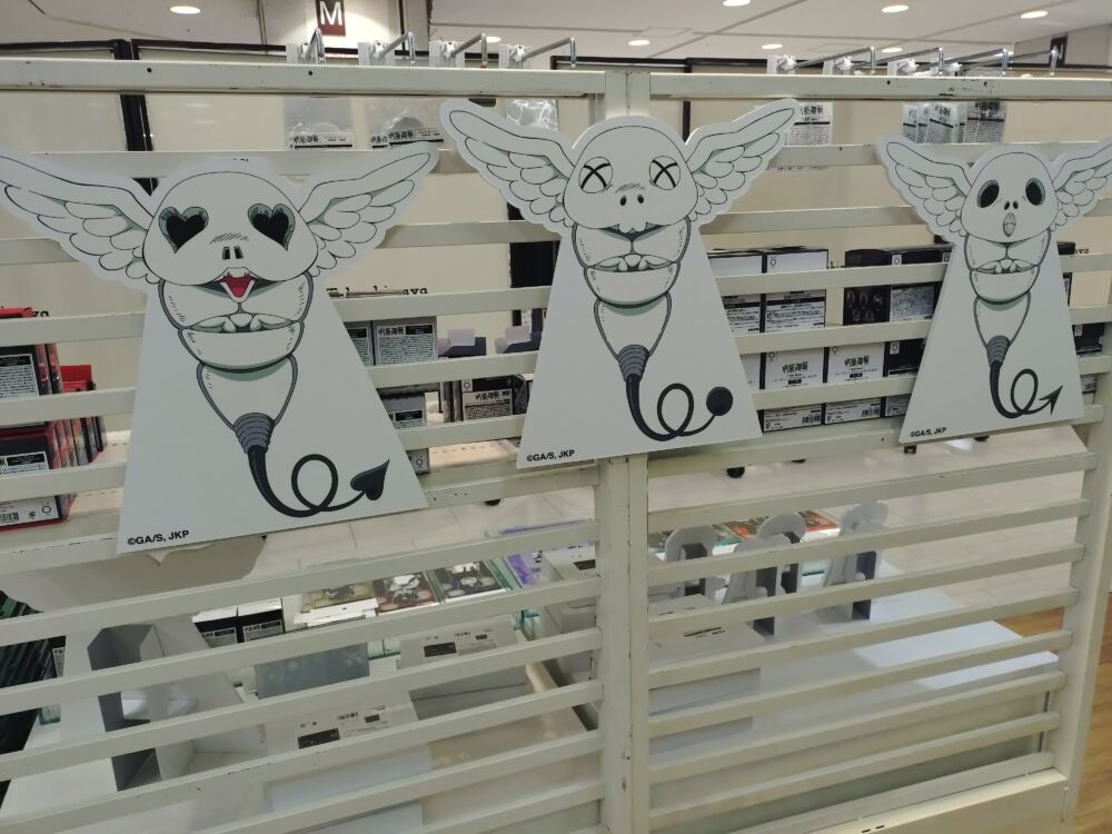 今回の死滅回遊のマスコットであるコガネのスタンディやダイカットパネルがあちこちに飾られていましたね。