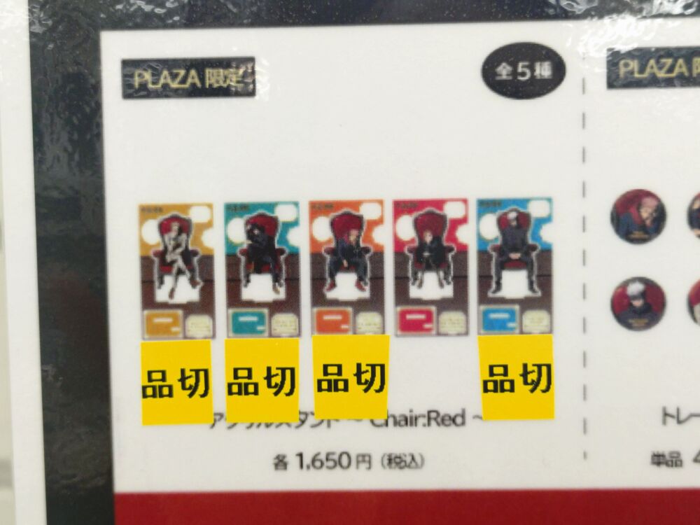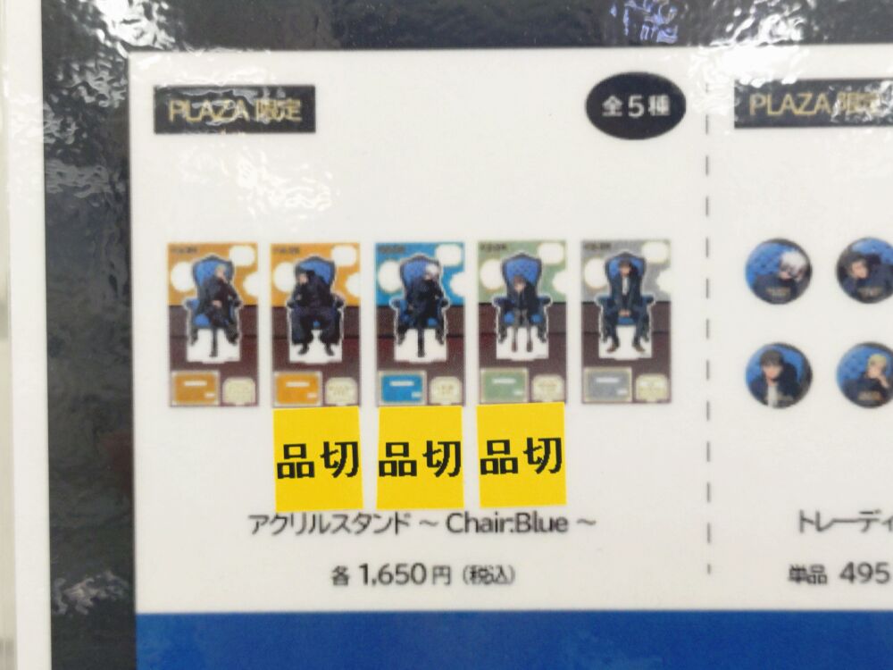 4/7(火)時点ではChair:BlueとChair:Redのアクリルスタンドの一部のキャラクターが完売という状況となっておりました。