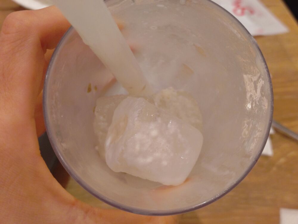 量が多いように見えますが半分が大きい氷で占められているので、量はそこまで多くないです。